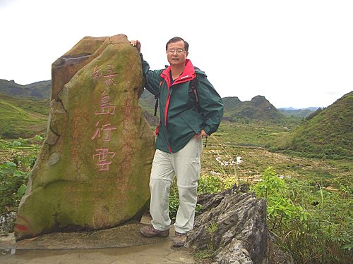 飯後搭小摩的到德天瀑布(碩龍→德天 14公里),從碩龍鎮出發沿黑水河向西逆流而上。經過天馬行空的綠島行雲(歸喜河灘中有一小島,綠翠如茸,中有奇石,河水或急或緩,迂曲盤拖,激起層層乳白水花像天上的流雲,因此叫綠島行雲)