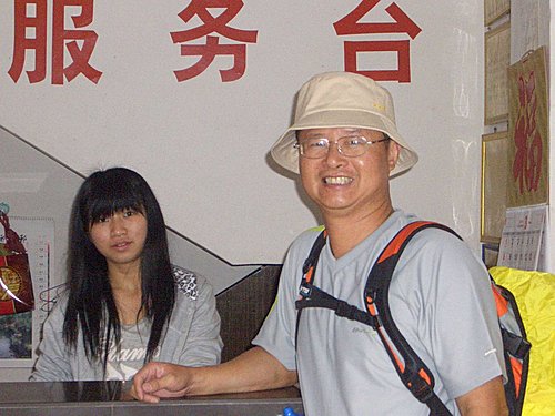 09:00在信禾客運站搭車往肇慶,然後又換車到封開,共撘了7個多小時的車.坐的全身痠痛,心理想著這才第一天啊. 到了封開一下車就有人來拉客,但是背包客精神是一切都要自己來,肥水不落外人田,所以任憑那些掮客說的天花亂墜,領隊也不為所動,大家只好背著背包開始沿路找飯店.(我偷看到有幾位團員臉上已冒出三條槓)好不容易找到一家,經議價後3人房45元成交,心想可以放下行李好好休息了,沒想到驗證件時服務生妹妹竟不知台胞證,一直要我們拿出大陸證件才可住,老闆又剛好外出,交涉了半個多鐘頭連哄帶騙的才說服她,大家約好20分鐘行李放好後去吃晚餐.