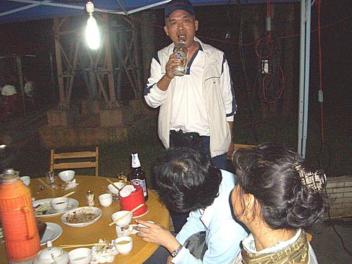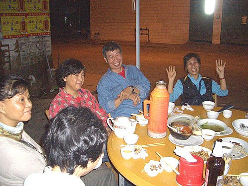 封開實在偏僻又落後,但物價夠便宜,我們找了一家餐館店名振濱大排檔,點了七菜一湯才90元.菜一上桌大家已經餓的不顧形象大吃起來,酒足飯飽後,葉兄開始發揮個人秀,又唱又鬧的讓大家忘記了一天坐車的辛苦.