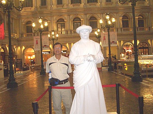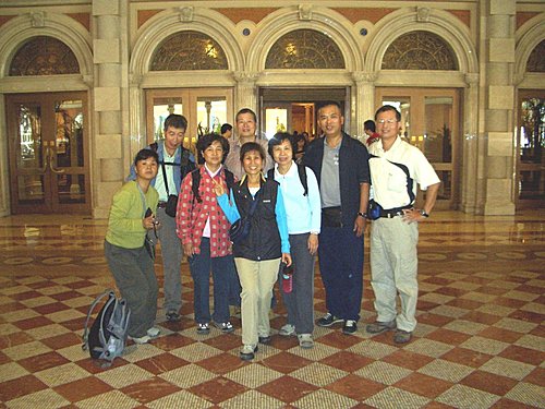 飛機10點準時起飛,約1個半小時就抵達澳門,辦理好入境手續後,大伙在大廳討論如何進入大陸珠海,這時葉兄提供他的經驗,撘威尼斯賭場專車去賭場參觀,既可免費搭車又可參觀賭場,最後專車還會送你去拱北關,一切免費,大夥無異議贊成.