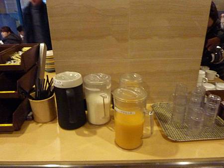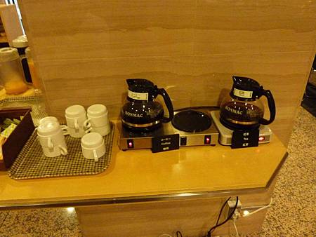櫃檯前自動飲料販賣機,早上7點-11點提供免費咖啡和阿華田飲料