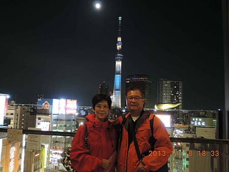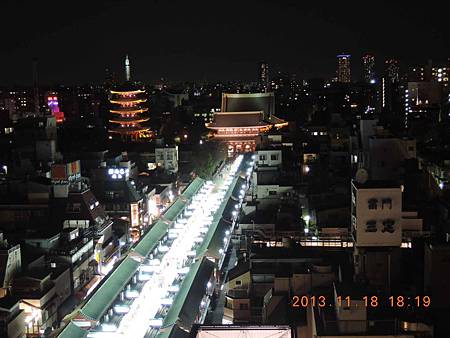 晴空塔夜晚美麗的身影,在淺草寺就可望見.