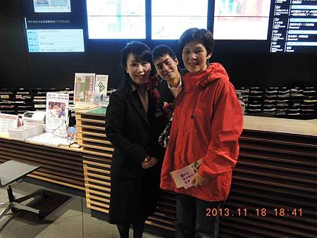 觀光案所裡的帥哥.美女服務人員親切有耐心.連不喜歡拍照的老婆,都忍不住合拍了一張.