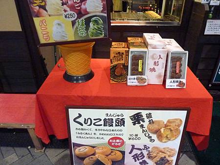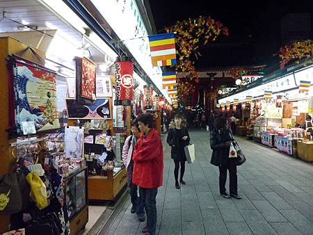 道路兩側是一排排自江戶時代延續下來的大小店鋪,出售日本最具特色的各式各樣的旅遊紀念品、民間工藝品、和服以及日本人喜食的小吃等。