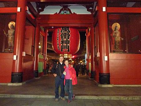 淺草寺的象徵物是風雷神門,上面掛著寫有“雷門”兩個字的大紅燈籠。這個燈籠重達130公斤,雷門的右邊有一尊風神像,左邊則是一尊雷神像,因此雷門的正式名稱為『風神雷門』。
