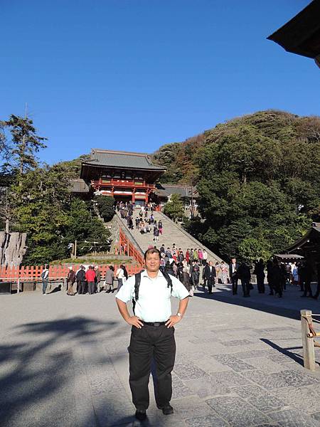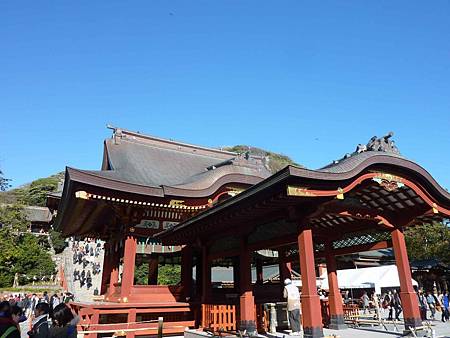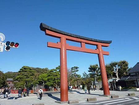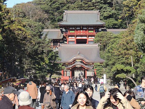 看到巨大的紅色第三個鳥居代表鶴岡八幡宮到了.這裡有長達大約500米的段葛(參道)是,為了祈禱源賴朝之妻北條政子的順產而修建的參道。到了春季這裡會變成一條櫻花隧道。