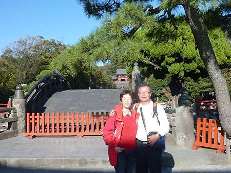 源平池:當年,源賴朝與平家之間的恩恩怨怨,被前者施以慘無人道的報復,他讓源家的水池非常大,平家的水池小小一個隔著太鼓橋東側的源氏池中有三座小島代表著生,而西側的平家池中有四座小島代表著死。