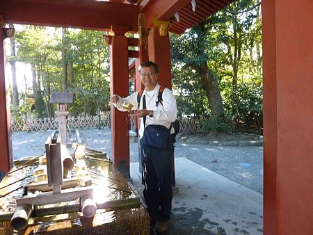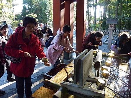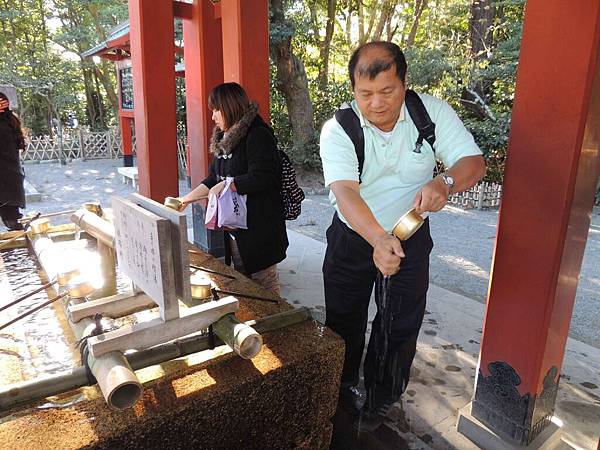 手水舍,建築風格與八幡宮一致,在日本進入神社或寺廟前必先洗手淨口.