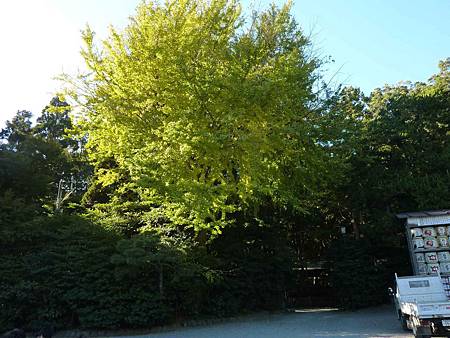 廣場側邊貢酒旁的銀杏也長得很高壯,可惜葉子還未黃.