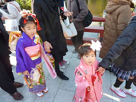 今天我們在八幡宮看到許多穿的很正式的爸媽及爺爺奶奶們,牽著可愛的日本小朋友前來祈福。