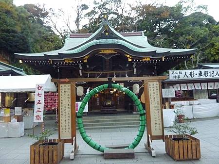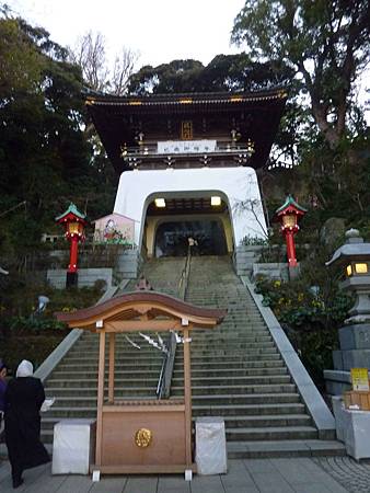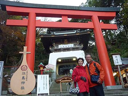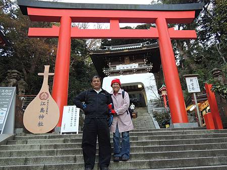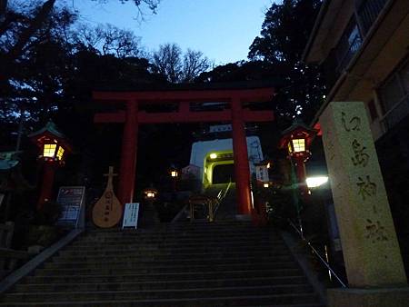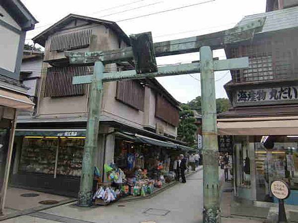 入口的青銅鳥居很有特色,約有190年左右的歷史,最早是在1747年建立,後來又在1821年重建,像似這個島的玄關,也是藤澤市的指定文化財產。