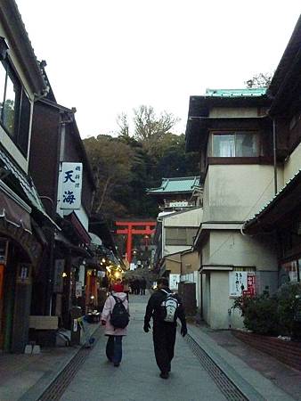 參道兩旁都是商家.(因到達的時間已晚,遊客很少,且商家也大部分關門).