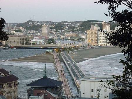 御神木一旁有一個小小的觀景台,可以看到連接江之島的大橋及市區.