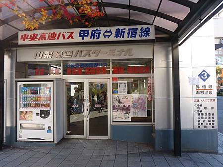 也可搭新宿高速巴士到甲府,票價便宜很多,約2000日圓.(往河口湖的巴士應該也是在這裡買).