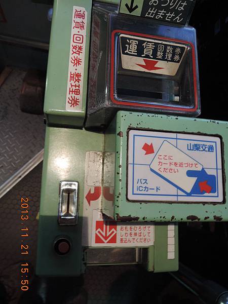 最後我們是在昇仙峽滝上站下車,6號燈顯示87,乘10=870日元就是票價.