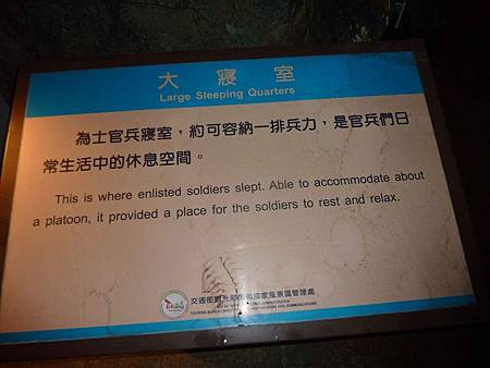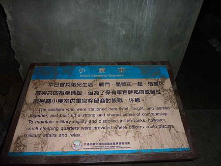 坑道內潮濕陰暗,不管晝夜牆壁都是濕漉漉,寢室床鋪也經常是半濕半乾的狀態.幸好當年分發部隊時沒抽中,不然2年兵待在這裡沒風濕才怪.