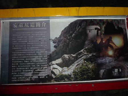 從坑道口往下走,就進入了別有洞天、四通八達的安東坑道。打通二重山的安東坑道全長三百公尺,沿途共有八個孔道,每條都通往海邊.
