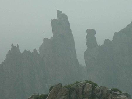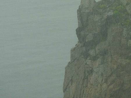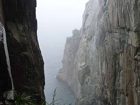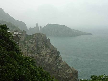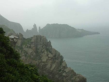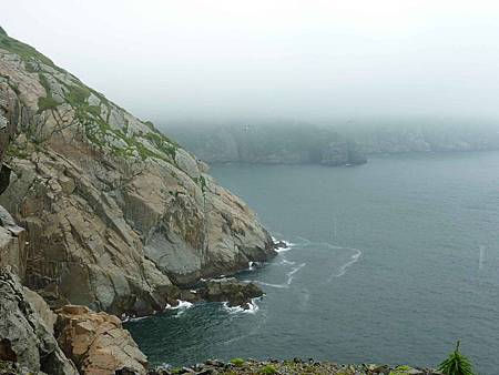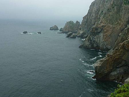 如果不是因霧影響視野,從這裡看一線天及東湧燈塔景觀應該很棒.