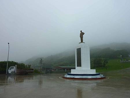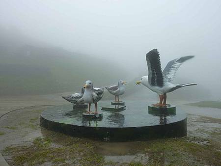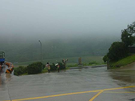 安東坑道附近的路口中央設置了黑尾鷗的意象標誌,這裡是到安東坑道必經的路口.這時雨勢很大,又逢大霧,因此打電話叫貴哥來接我們.