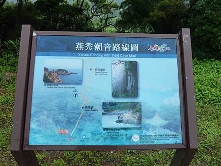 無法進入北海坑道,只好轉往燕秀潮音.回頭往前走到路口看到這個標示牌.剛好有個阿兵哥弟兄走過來,問了一下距離,他說不遠,走路約10分鐘.看了這條路的陡坡後,除了我想繼續走進去外,全員都打退堂鼓,因此兵分兩路,他們往前走到東引酒廠休息,我腳程快,先去燕秀潮音後再轉往酒廠會合.