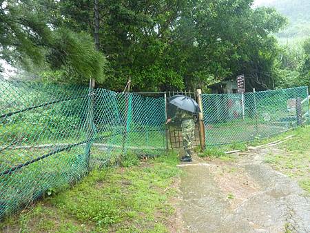 下著細雨路滑實在不好走,腳程快的我也走了約10幾分鐘才來到這裡,沒想到竟然有衛兵崗哨守著,必須換證件才能進去.