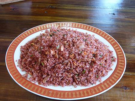 這道紅糟炒飯比東引香格里拉小吃店好吃多了,連不愛吃紅糟的老婆都讚賞. (