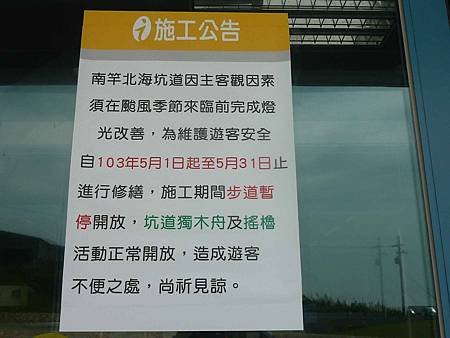 第一站先到南竿遊客中心,馬上就掌握到北海坑道,步道正在整修,暫時封閉的資訊.