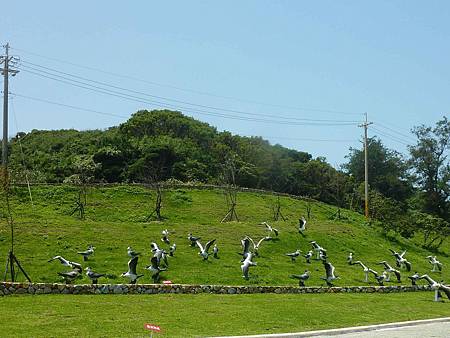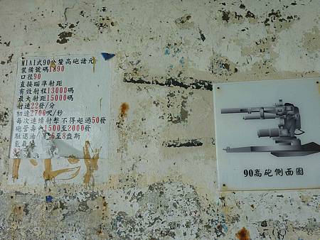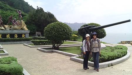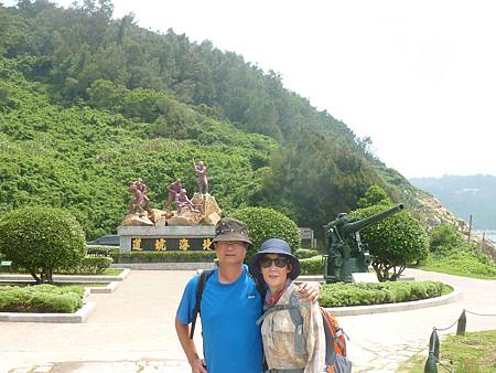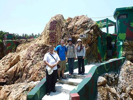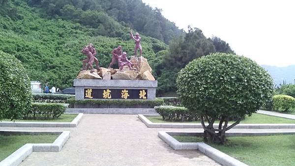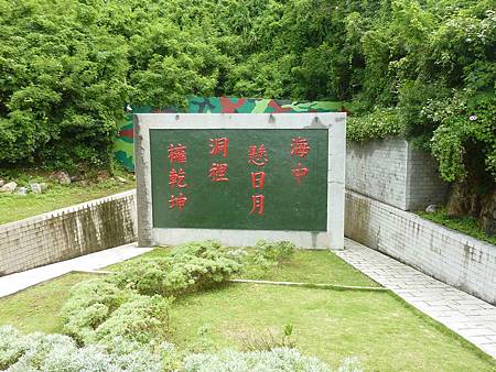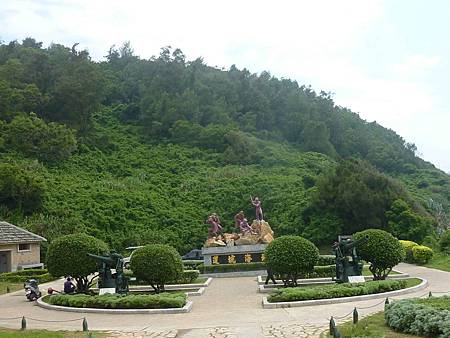 入口處除了擺設兩門退役的高射砲之外,還有仿照著當年士官兵們同心同力一鑿一斧胼手胝足挖掘坑道時辛苦模樣的圖騰雕像,藉以表徵當時工程的艱鉅。