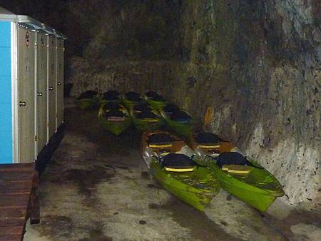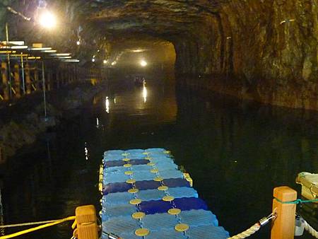 難得來到北海坑道,卻因整修無法進入,只好花些錢,坐搖櫓划進去看看.
