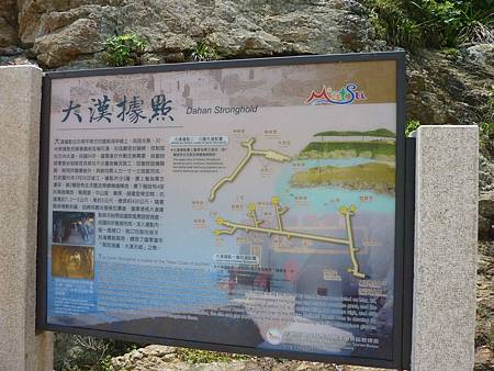 大漢據點位於南竿南方的鐵板海岸線上,與莒光島、33、46等據點控鎖著鐵板及梅石澳,形成嚴密封鎖網,控制莒光方向水道,戰略地位相當重要。民國64年,國軍基於作戰任務需要,由當時陸軍登步部隊官兵弟兄不分晝夜輪流施工;因當時設備簡陋,除用炸藥爆破外,其餘均靠人力一寸一土挖掘而成,於民國65年3月29日竣工。 資料來源:馬祖國家風景.