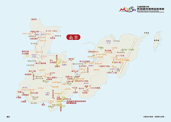 南竿舊稱「下竿塘」、「南竿塘」,是馬祖列島的首善之區,面積10.64平方公里,居四鄉五島之冠,是連江縣行政、經濟、交通以及軍事的中心。在行政區劃分上,南竿自成一鄉,共轄有9個村落,其中以連江縣政府所在地的介壽(山隴)為縣治所在,福澳村的福澳港是台馬輪與離島快輪的靠泊碼頭,是馬祖的海運中心。 資料來源:馬祖國家風景.