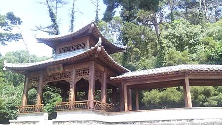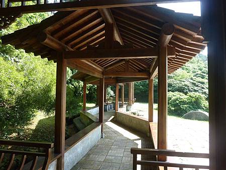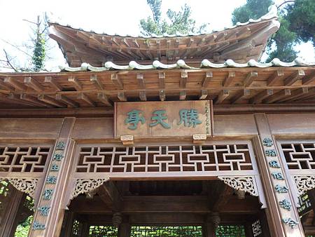 仿宋代庭園而建的勝天亭,由灰瓦木樑所打造而成的雙亭迴廊,在林木環繞中別有一股優雅的韻致。