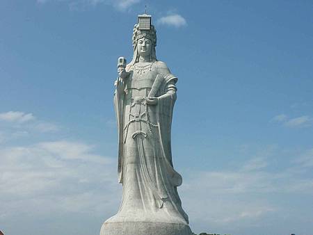 98年10月完工的媽祖巨神像,高度28.8公尺,是全世界最高的一座媽祖神像,正好符合連江縣四鄉五島總面積28.8平方公里,不過後來最新測量為29.6平方公里,所以在媽祖巨神像加上80公分的避雷針,高度正好為29.6公尺。整座媽祖巨神像主體是由365塊花崗岩為主結構興建起來,也象徵「日日平安」之意。資料來源:馬祖國家風景區全球資訊網.