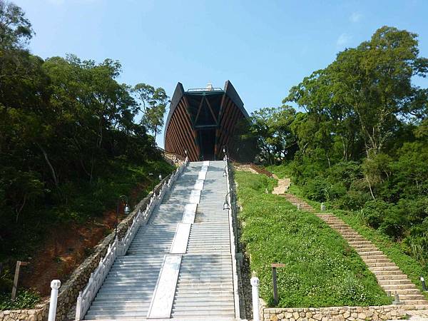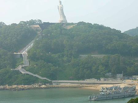從後山走過來,穿過神轎下就來到媽祖巨神像.