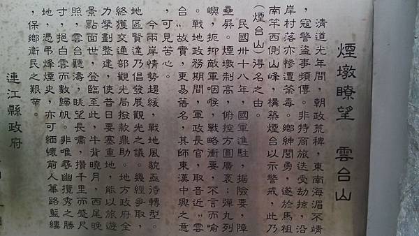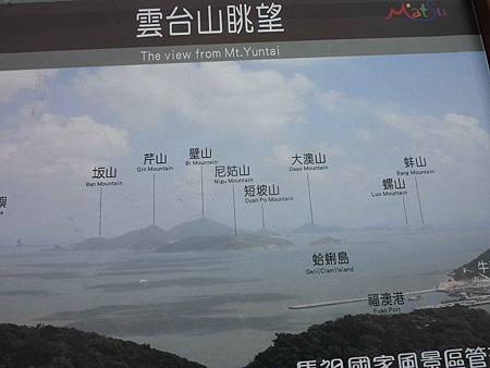 雲台山標高248公尺,是南竿第一高峰,為台灣小百岳第98座,是登高遠眺馬祖列島與大陸北茭半島的最佳景點。我們今天算完成了登百岳之一了.呵呵.