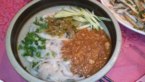 手工麵條淋上獨門炸醬,是店裡的招牌.聽說牛肉麵也不錯.