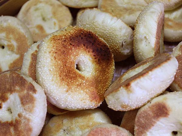 寶利軒創立於一九六七年,至今超過四十年,店裡的繼光餅都是以老麵發酵,加上以木炭烘烤的方式,使得烤出來的餅面皮富嚼勁而不老、底皮脆而不硬,加上金黃色外皮與芝麻香,以及獨特的木炭香味,越嚼越香,口感相當獨特。