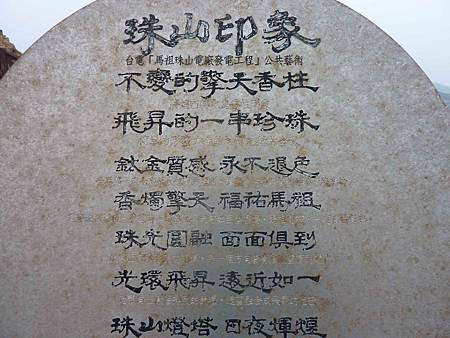 珠山電廠的煙囪外觀造型,係以媽祖香柱轉化而來,使用彩色純鈦片,以層次豐富的幻化光影取代油漆彩繪的平版色塊,是舉世唯一的創舉,命名為「珠山印象」。