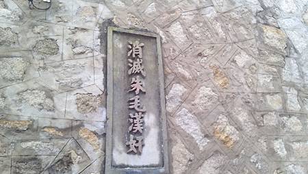 有沒有看錯,標語還寫錯字(後,不是雙人旁嗎?),在當年可要砍頭啊.聽說蔣經國曾責問這個錯字,馬祖官員卻用渡水反攻大陸來解釋,後來蔣經國接受這樣的說法,乃至整個北竿島的字偏旁,都變成三點水了。(危機處理的功力實在令人嘆為觀止,現在政府官員就是少了這等人才,才會做尬流 "汗ㄍㄨㄚ",哄嫌尬流 "ㄋㄨㄚ".呵呵.