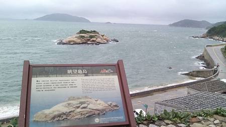 芹壁村北面,澳口中央有一突起的花崗岩礁石,島之形成節理奇特,望之酷似一巨龜靜臥在碧波間,居民謂之為「龜島」。島的四周,海水清澈見底,有「鏡澳」之稱的芹壁村,能興盛一時,傳說乃此一風水特佳之故。