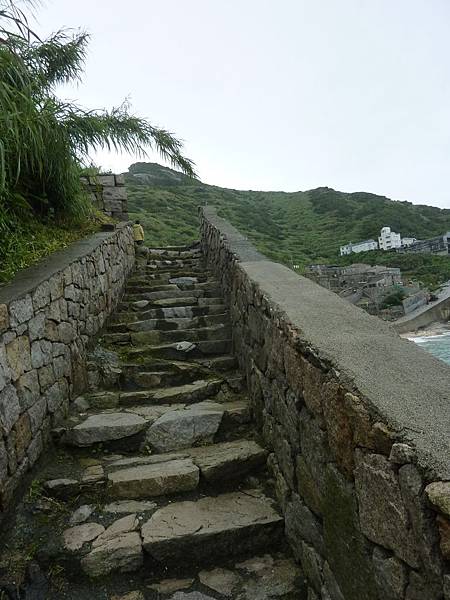 你可沿著公路邊欣賞海景走到聚落末端,再從石階往上走回頭.