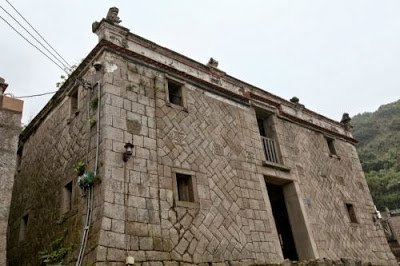 花崗岩石屋群順著山勢成梯形羅列,櫛比鱗次,各戶間互不影響展望空間,房屋建材多以花崗岩等火成石係為主。由於石材質地粗糙且富青白、黃褐、磚紅等色澤,相間堆砌成的美麗石板屋,頗能與環境相融合.