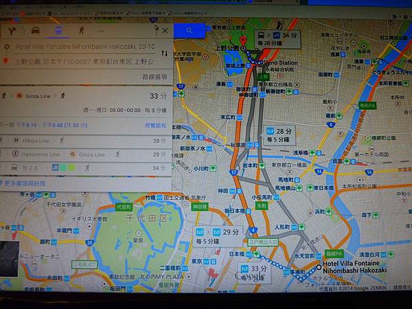 Hotel Villa Fontaine Nihombashi Hakozaki 飯店走到東京Metro 水天宮站(約3分鐘)搭半藏門線(紫色)-三越前站下車(1站)轉銀座線到上野下車.