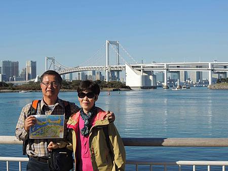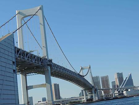 日出棧橋∼台場海濱公園大約20分鐘的行程,背後就是著名的彩虹大橋.