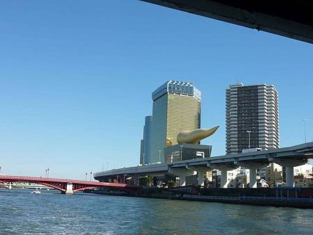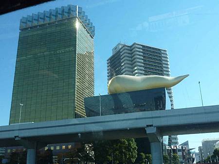 這個奇形怪狀的東西就是朝日啤酒的啤酒泡泡,也有人說這是一條金色便便.嗯....真像.哈哈.