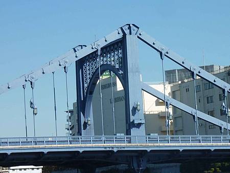 這些橋樑以前都是木橋,在關東大地震時全毀損了,所以現在改為鐵橋。航行在隅田川上,就像在逛橋梁博物館一樣。漂亮的橘黃色、優雅的紫藍色,帶有年代感的石材橋墩,或是工業風的裝飾性吊橋,每一座橋都有著自己的特性,並服務著河川兩岸的居民。