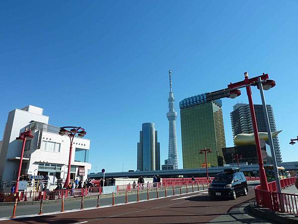 走出地鐵站就可看到紅色的吾妻橋,搭船處就在隅田川邊.(畫面左邊的建築物).