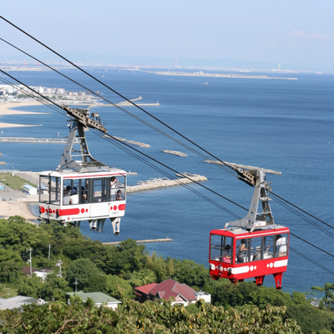 搭乘空中纜車上山直達須磨浦山上遊樂園。這裡是神戶市民的後花園,居高臨下的視野,可將神戶市與大阪灣的風景盡收眼底。