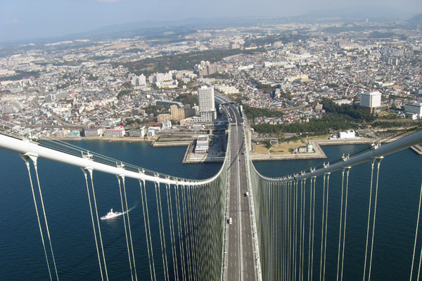 明石海峽大橋(日文:あかしかいきょうおおはし,英文:Akashi Kaikyō Bridge)位於日本本州與四國之間,連接日本神戶和淡路島之間的跨海大橋,為兩地重要的交通要道。它跨越明石海峽,上層為公路,下層供鐵道使用。是目前世界上跨距最大的橋樑及吊橋。(資料來源:維基百科)