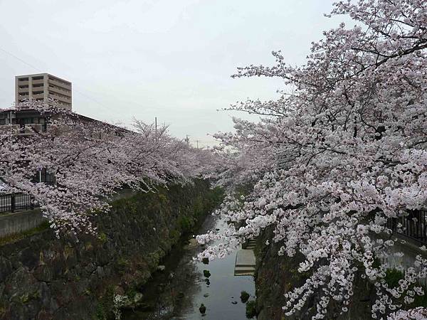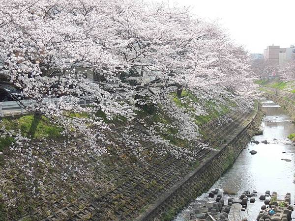 步行約8分鐘,來到佐保川.河岸兩邊一片花海,花海蔓延有一、二公里。漫天的櫻花綻開,美得讓人無限神往。第一眼就讓人無法言語,因為真的太漂亮了。
